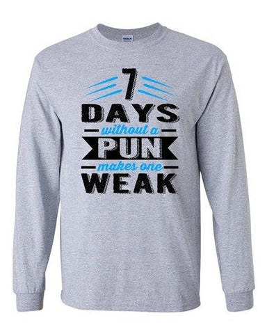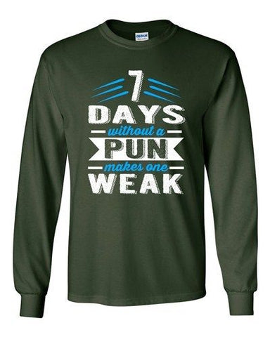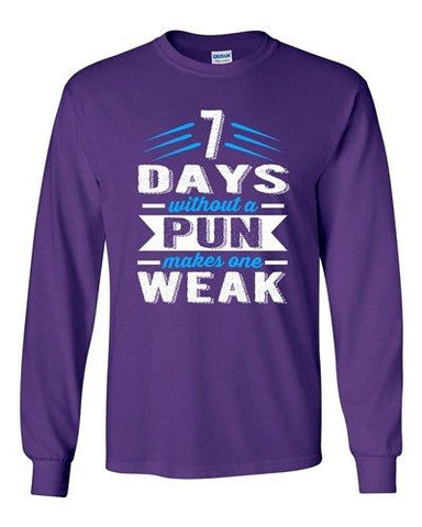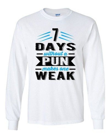 7 Days Without A Pun Makes One Weak Funny Gift Long Sleeves T-Shirts Tee. Novelty Tees, high quality tees and other cool apparel, only from City Shirts.
