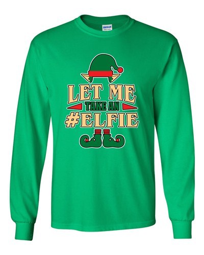 Long Sleeves Let Me Take An #Elfie Ugly Christmas Funny T-Shirts Tee. Humor Novelty Tees, high quality tees and other cool apparel, only from City Shirts.
