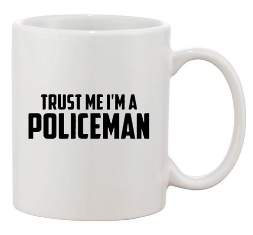 Trust Me I'm A Policeman Funny Perfect Gift Dishwasher Safe Coffee Mugs. Humor Novelty Glassware, high quality ceramic coffee cups only from City Shirts.