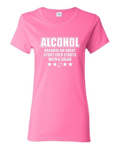 Ladies Alcohol Because No Great Story Ever Starts With A Salad Funny T-Shirt Tee