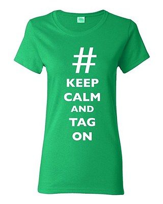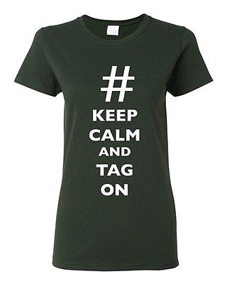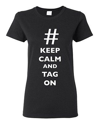 Ladies Keep Calm And Tag On Hashtag # Funny Novelty DT T-Shirt Tee