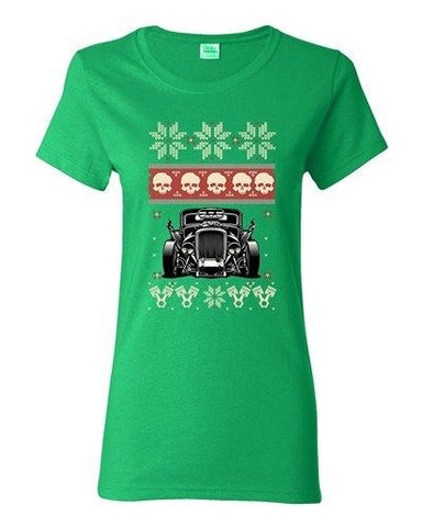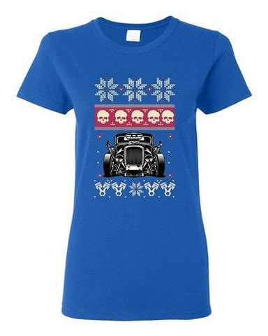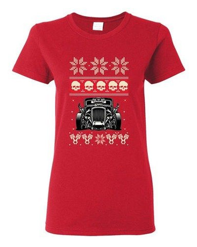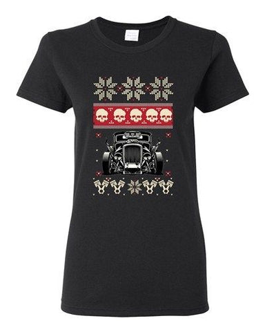 Ladies Skull Vintage Car Race Ugly Christmas Holiday Gift Funny DT T-Shirt Tee