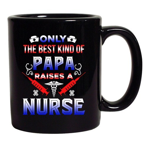 Only The Best Kind Of Papa Raises A Nurse Funny Dishwasher Safe Coffee Mugs. Humor Novelty Glassware, high quality ceramic coffee cups only from City Shirts.