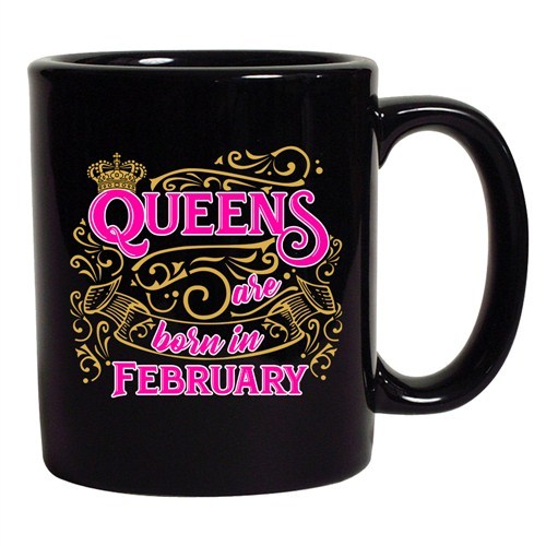 Queens Are Born In February Crown Birthday Funny Dishwasher Safe Coffee Mugs. Humor Novelty Glassware, high quality ceramic coffee cups only from City Shirts.