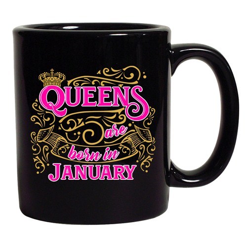 Queens Are Born In January Crown Birthday Funny Dishwasher Safe Coffee Mugs. Humor Novelty Glassware, high quality ceramic coffee cups only from City Shirts.