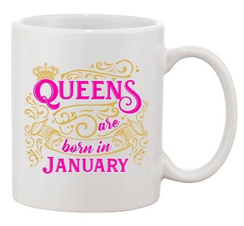 Queens Are Born In January Crown Birthday Funny Dishwasher Safe Coffee Mugs. Humor Novelty Glassware, high quality ceramic coffee cups only from City Shirts.