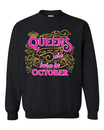 Queens Are Born In October Crown Birthday Funny DT Crewneck Sweatshirt