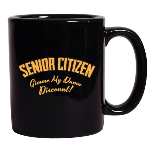 Senior Citizen Old Grandma Grandpa Funny Dishwasher Safe Coffee Mugs. Humor Novelty Glassware, high quality ceramic coffee cups only from City Shirts.